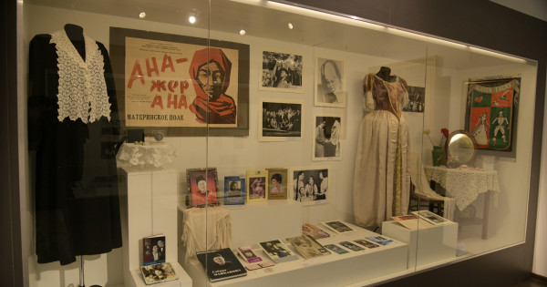 ونىڭ بەر جاعىندا ۇلتتىق مادەنيەتكە جانكەشتىلىكپەن قىزمەت ەتكەن ءانۋار مولدابەكوۆ, ىدىرىس نوعايباەۆ, ءازىربايجان مامبەتوۆ, حابيبا ەلەبەكوۆا, حاديشا بوكەەۆا, ءسابيرا مايقانوۆا, فاريدا ءشارىپوۆا, تورعىن تاسىبەكوۆا, ءاسانالى ءاشىموۆ سياقتى كورنەكتى ونەر مايتالماندارىنىڭ جارقىراعان بەينەلەرىن, قويىلىمدارداعى كوستيۋمدەرىن تاماشالاۋعا بولادى.