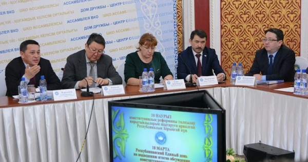 جيىندى اشقان شىعىس قازاقستان وبلىستىق قازاقستان حالقى اسسامبلەياسى حاتشىلىعىنىڭ مەڭگەرۋشىسى اسقار نۇرعازيەۆ كونستيتۋتسيالىق رەفورمالار حالىق اراسىندا ءبىر اي بويى قىزۋ تالقىلانعانىن, جۇمىس توبىنا 6 مىڭعا جۋىق ۇسىنىس تۇسكەنىن, جەرگىلىكتى دەڭگەيدە 10 مىڭعا تارتا كەزدەسۋ وتكەنىن, وعان 2 ميلليونعا جۋىق ادامنىڭ قاتىسقانىن تىلگە تيەك ەتىپ, شىن مانىندە بۇكىلحالىقتىق تالقىلاۋ بولعانىن اتاپ ءوتتى.