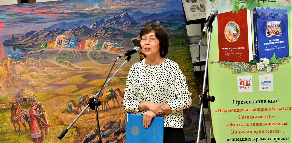 − قازاق ەلىنىڭ كورنەكتى ايەلدەرى: ارمان العا جەتەلەپ. ۆىدايۋششيەسيا جەنششينى كازاحستانا: سوزيدايا مەچتۋ» كىتابىن شىعارۋداعى باستى ماقسات – قازاقستاندىق ايەلدەردىڭ ەلىمىزدىڭ تاۋەلسىزدىك الۋى مەن مەملەكەتتىگىمىزدى قالىپتاستىرۋعا قوسقان ۇلەسى جايلى قۇجاتتىق كۋالىك قالدىرۋ. باسىلىمعا ساياسات پەن بيز-