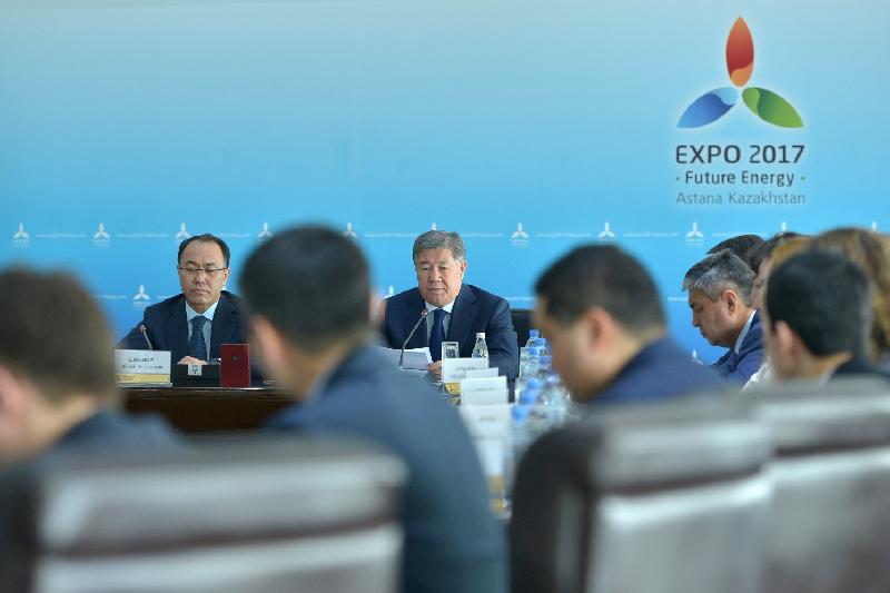 كەشە «استانا ەكسپو-2017» ۇك» باسقارما توراعاسى احمەتجان ەسىموۆ پەن مەم­­لەكەتتىك قىزمەت ىستەرى جانە سىبايلاس جەمقورلىققا قارسى ءىس-قيمىل اگەنت­تىگى توراعاسى قايرات قوجامجاروۆ ەكسپو الاڭىندا جۇمىس ىستەپ جات­قان كومپانيالاردىڭ باسشىلارى, باس مەردىگەرلەردىڭ قاتىسۋىمەن جيىن وتكىزدى.