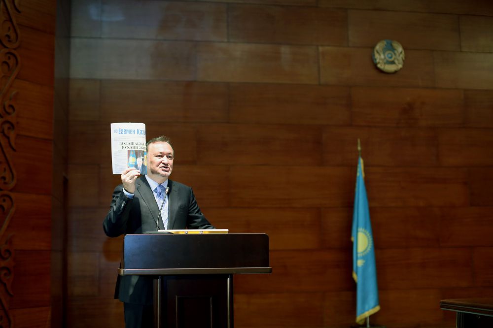 «رۋحاني جاڭعىرۋ دەگەنىمىز, ۇلتتىق سالت-سانا, ادەت-عۇرىپ, ءمادەني داستۇرلەردى بەرىك ساقتاي وتىرىپ, ونى جاڭا زامان جەتىستىكتەرىمەن, جالپىادامزاتتىق قۇندىلىقتارمەن بايىتۋ», دەپ اتاپ كورسەتتى پارتيا قايراتكەرى.