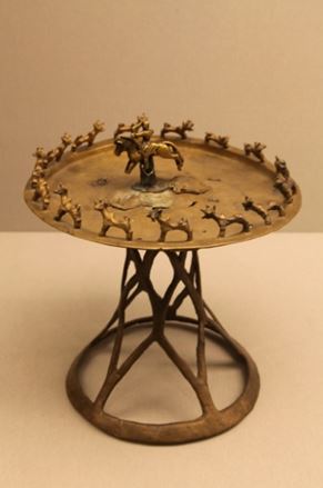 بەينەسىنە قاراي وتىرىپ, شىراعداننىڭ عۇرىپتىق راسىمگە ارنالعانىن بايقاۋعا بو­لاتىنداي. اسىرەسە جان­ۋارلاردىڭ ءمۇ­سىنى بار ءدوڭ­گەلەك تاباقتا ەرەكشە كوم­­پوزيتسيالىق بىرلىك بار. باس­تارىن سول جاققا بۇرىپ ورنالاستىرعان ون بەس بۇقا مەن قولىنا ساداق ۇستاپ تۇرعان  سالت اتتىنىڭ ءمۇسىنى كورەرمەندى ءتۇرلى ويلارعا جەتەلەيدى. كوپ­شىلىك عالىمدار سالت اتتىنى ميفولوگيادا كەزدەسەتىن كۇن قۇدايى ميتراعا تەڭەيدى. ال شىراعدان تاباعى – ول مەكەن ەتەتىن تاۋ. ايتا كەتەيىك, ءجا­دىگەر ءبىزدىڭ داۋىرىمىزگە دەيىنگى ءىىى-ءى عاسىردىڭ ەنشىسىنە تيەسىلى. وسى زاتپەن بىرگە تابىلعان كوپ­تەگەن تۇرمىستىق بۇيىمدار قا­زىرگى الماتىنىڭ ورنىندا بۇ­رىن دا ۇلكەن قالا بولعانىن ايعاق­تايدى.