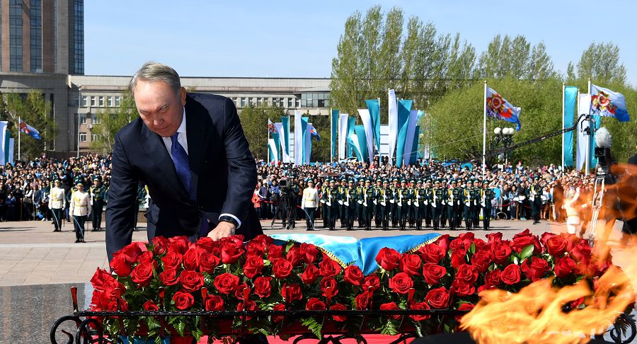 «قازا تاپقانداردىڭ قاتارىندا قازاقستاندىقتار دا بولدى. رەسپۋبليكامىزدىڭ 6 ميلليون حالقىنىڭ 20 پايىزى مايدانعا اتتاندى. ولاردىڭ جارتىسى قايتا ورالعان جوق», – دەدى نۇرسۇلتان نازارباەۆ.