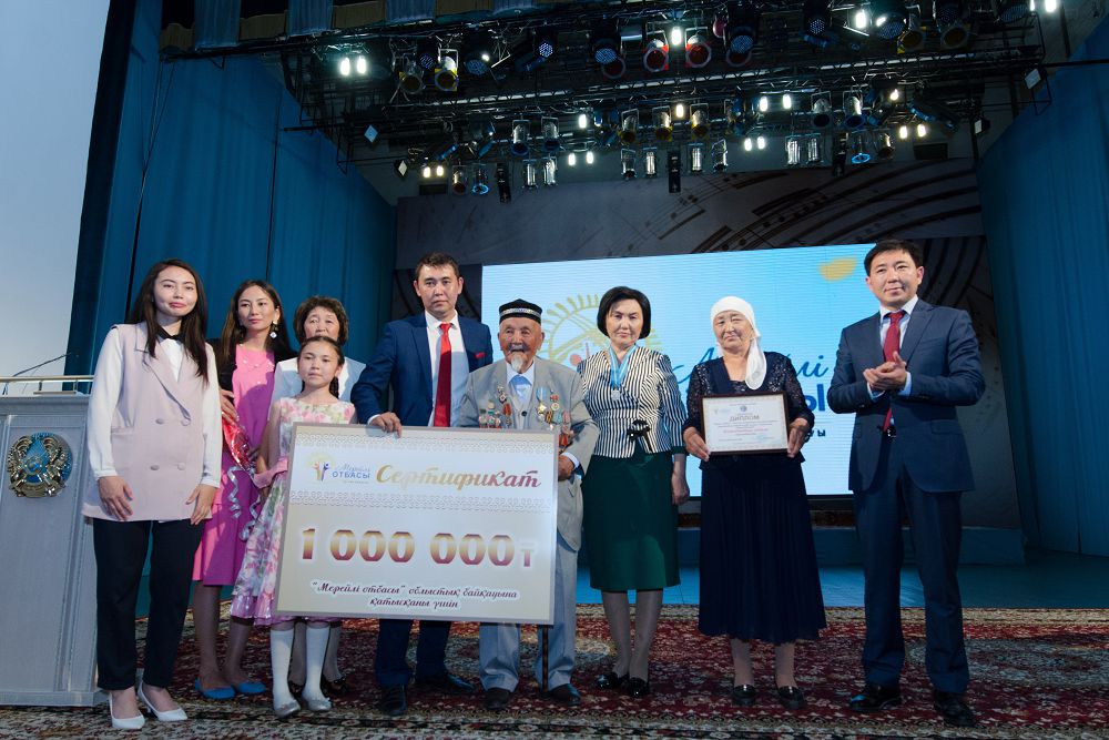 كوجەكباەۆتار اۋلەتىنىڭ اقساقالى 105 جاستاعى قاريا كۇرىشبەك كوجەكباەۆ پەن جاراسوۆتار وتباسىنىڭ وتاعاسى ماقسىمجان جاراسوۆ ماراپاتتارىن وبلىس اكىمىنىڭ ورىنباسارى جاقسىلىق وماردىڭ قولىنان الدى.