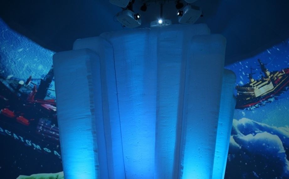 ەكسپوزيتسيانىڭ باستى جاڭالىعى - اركتيكادان, عالامشاردىڭ «ەڭ توبەسىنەن» جەتكىزىلگەن مۇز سەڭى بولدى. قالىڭدىعى 4 مەتردى قۇرايتىن مۇز سەڭى ەكى جىلدا تۇزىلگەن جانە ارنايى كونتەينەرلەر ارقىلى استاناعا جەتكىزىلگەن.