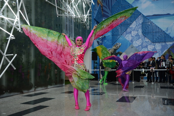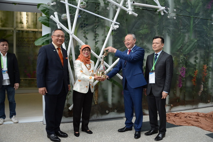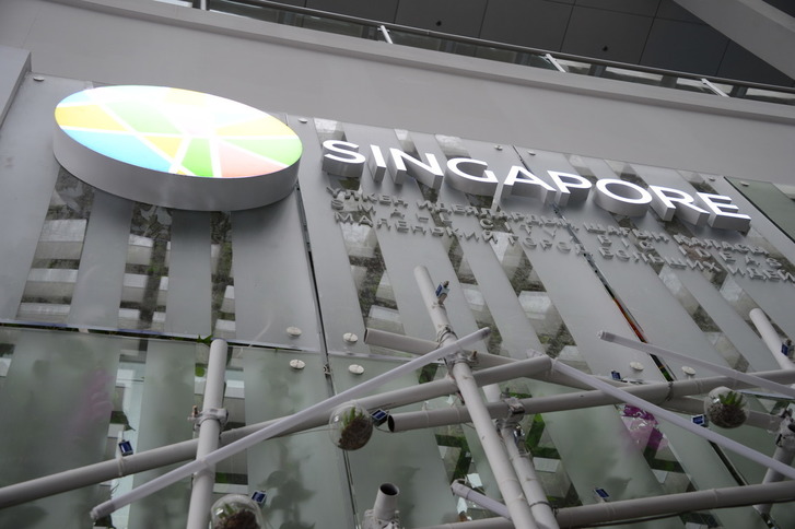 سينگاپۋر پاۆيلونى التى ايماقتان تۇرادى. ونى مەملەكەتتىڭ جەتەكشى ساۋلەتشىلەرىنىڭ ءبىرى رەندي چەن جاساعان. پاۆيلون قوناقتار نازارىنا ەڭ جاڭا تەحنولوگيالاردى ۇسىنادى. مىسالى, قۋاتتى از تۇتىناتىن ۇيلەر, بيىك عيماراتتارعا تىگىنەن ورىلەتىن جىلىجايلار, سۋ قويمالارىندا قولدانۋعا ارنالعان جۇزەتىن كۇن باتارەيالارى.