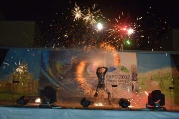 شارادا وبلىستىق مادەنيەت باسقارماسىنا قاراستى وڭتۇستىك-تسيركتىڭ ەسترادالىق دجاز وركەسترى مەن ارتىستەرى ونەر كورسەتتى. ەكى بولىمنەن تۇراتىن ەرەكشە جوبا اياسىندا تسيرك مەكەمەسىنىڭ «ح بەند» ەسترادالىق دجاز وركەسترىنىڭ سۇيەمەلدەۋىمەن وتاندىق جانە شەت ەلدىڭ تانىمال زاماناۋي شىعارمالارى جاندى داۋىستا ورىندالدى. وڭتۇستىك-تسيرك مەكەمەسىنىڭ ەسترادالىق دجاز وركەسترىنىڭ باس ديريجەرى, حالىقارالىق دجاز فەستيۆالدەرىنىڭ لاۋرەاتى - سەرىك وتەگەنوۆ. كاسىبي مۋزىكا ماماندارىنان قۇرالعان وركەستر ۇجىمىنىڭ كونتسەرتى كورەرمەن جۇرەگىنەن ورىن تاپتى. ەكسپو-2017 كورمەسىنىڭ اشىلۋىنا وراي وتكىزىلگەن جاندى داۋىستاعى تسيرك وركەسترىنىڭ كەشىنە قازاق ەستراداسىنىڭ ماەستروسى, سازگەر, قازاقستان رەسپۋبليكاسىنىڭ ەڭبەك سىڭىرگەن قايراتكەرى, ديريجەر نۇرلان بايگوزوۆ قاتىستى.