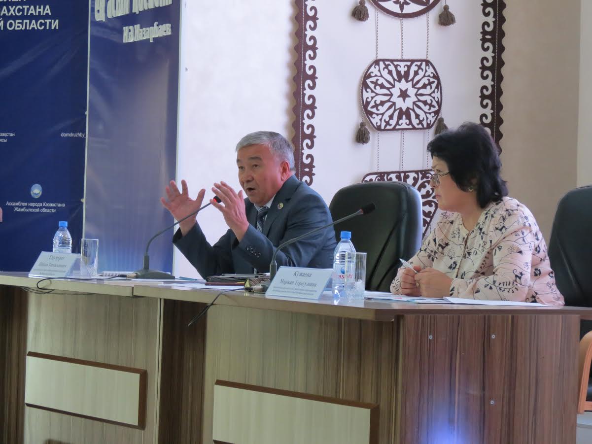 كەڭەس وتىرىسىندا جامبىل وبلىسى قازاقستان حالقى اسسامبلەياسى قوعامدىق كەلىسىم كەڭەسى توراعاسىنىڭ ورىنباسارى, وبلىستىق ءبىلىم باسقارماسىنىڭ ادىسنامالىق كابينەت مەڭگەرۋشىسى بيگەلدى تاجىباەۆ بايانداما جاساپ, «ماڭگىلىك ەل» جالپىۇلتتىق يدەياسى اياسىندا ءبىلىم الىپ جاتقان بالالارعا پاتريوتتىق تاربيە بەرۋدى ارتتىرۋ ماسەلەسىن ايتىپ ءوتتى. ال جامبىل وبلىسى قازاقستان حالقى اسسامبلەياسى حاتشىلىعىنىڭ باس مامانى ۇلتۋار باباقۇلوۆا جامبىل, بايزاق, تالاس جانە سارىسۋ اۋداندارىنداعى قوعامدىق كەلىسىم كەڭەستەرىنىڭ جۇمىس بارىسىن باياندادى.