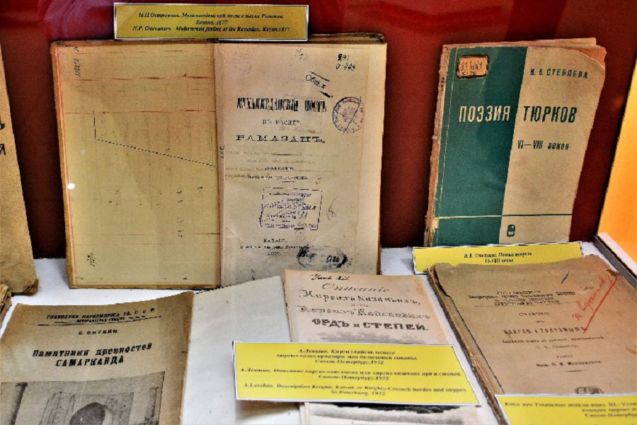 سونىمەن قاتار, پاتشالىق رەسەي تاريحشىسى, تۇرىكتانۋشى, ورىس گەوگرافيا قوعامىنىڭ نەگىزىن قالاۋشىلاردىڭ ءبىرى الەكسەي يراكليەۆيچ لەۆشيننىڭ 1832 جىلى ورىس تىلىندە جازىلعان «وپيسانيە كيرگيز-كازاچيح يلي كيرگيز-كايساتسكيح گور ي ستەپەي» اتتى قازاق تاريحىنا قاتىستى تۋىندىسىنىڭ 1932 جىلى سانكت-پەتەربۋرگتە جارىق كورگەن جاڭارعان نۇسقاسى تۇر مۇندا. بۇدان باسقا 1938 جىلى لاتىن ارپىمەن باسىلعان ادەبيەتتانۋشى عالىم ق.جۇماليەۆتىڭ «ادەبيەت تەورياسى» جانە اقىن كارىباي تاڭاتاروۆتىڭ شىڭجاڭ ولكەسىنەن اكەلىنگەن قولجازباسى قاتارلى دۇنيەلەردى كورۋگە بولادى.