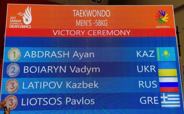 ءبىرىنشى جەكپە-جەكتە قازاقستاندىق سپورتشى رەسەي تاەكۆوندوشىسىنان, ەكىنشىدە – يراندىقتان, ۇشىنشىدە – قىتايدان باسىم ءتۇسىپ, فينالدا ۋكراين تاەكۆوندوشىسىن جەڭىپ كەتتى.