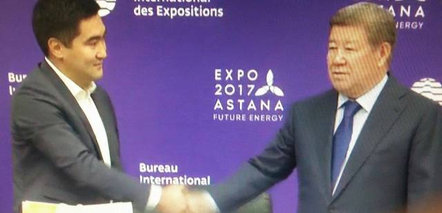 ەكى ميلليونىنشى قوناقتى قۇتتىقتاۋ ءۇشىن ەكسپو-2017 مەديا-ورتالىعىنا «استانا ەكسپو-2017» ۇلتتىق كومپانياسىنىڭ باسقارما توراعاسى احمەتجان ەسىموۆ ارنايى كەلىپ, قۇتتىقتاپ, ەستەلىك سىيلىقتار تابىستادى.