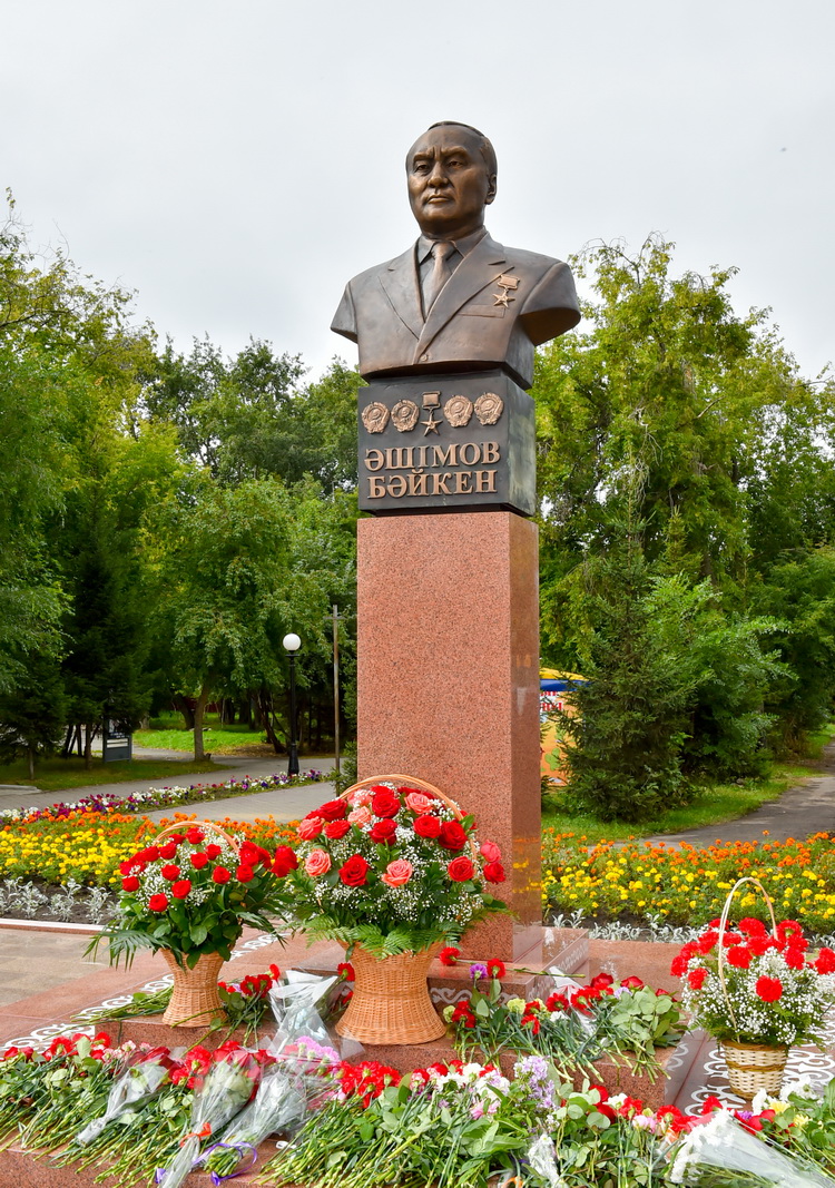 «باعدارلامانى جۇزەگە اسىرۋ ءبىزدىڭ مەملەكەتىمىزدىڭ, حالقىمىزدىڭ تاريحىن تانۋعا, ەل تاريحىندا ەشكىمگە ۇقسامايتىن بايكەن ءاشىموۆ سياقتى كەمەل تۇلعالاردىڭ عالامات ءرولىن سەزىنۋگە جول اشادى. ۇلى وتان سوعىسى جىلدارىندا كورسەتكەن ەرلىگى مەن تاباندىلىعى ءۇشىن «قىزىل جۇلدىز», ەكى مارتە ءبىرىنشى دارەجەلى «وتان سوعىسى» وردەندەرىمەن, «ەرلىگى ءۇشىن» مەدالىمەن, پولشانى ازات ەتكەنى ءۇشىن وردەنمەن ماراپاتتالدى. پارتيالىق كەڭەس جۇمىسىندا ول ءوزىن دانا ۇيىمداستىرۋشى جانە ساياساتكەر رەتىندە كورسەتە ءبىلدى. مينيسترلەر كابينەتىنىڭ توراعاسى لاۋازىمىندا قازاقستاننىڭ دامۋىنا باعا جەتپەس ۇلەس قوستى. مەملەكەت باسشىسى بايكەن ءاشىموۆتى «وتان» وردەنىمەن ماراپاتتاي وتىرىپ, بايكەن ءاشىم ۇلىنىڭ ءومىرى ۇلى وتانىمىزعا قالتقىسىز قىزمەت ەتۋدىڭ جانە قاجىرلىلىقتىڭ جارقىن ۇلگىسى ەكەندىگىن اتاپ ايتقان بولاتىن», دەدى قۇمار اقساقالوۆ.