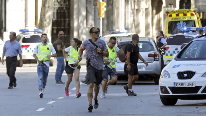 جۇك كولىگى تۋريستەر كوپ قاتىنايتىن الاڭداعى كوشە بويىمەن 530-دان استام مەتر قاشىقتىقتى ءجۇرىپ وتكەن. "يسلام مەملەكەتى" تەررورلىق توبى لاڭكەستىك اكتىگە جاۋاپكەرشىلىكتى ءوز موينىنا الىپ وتىر. كاتالونيا باسشىسى كارلەس پۋچدەمون 100 ادامنىڭ زارداپ شەككەندىگىن جەتكىزدى. قۇقىق قورعاۋ ورگانىنىڭ وكىلدەرى بۇل قايعىلى وقيعانى تەراكت دەپ سيپاتتادى. ال بيلىكتەگىلەر زارداپ شەككەندەردىڭ قاتارى ءالى دە ارتاتىنىن ايتتى.