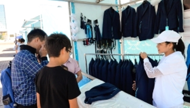 جارمەڭكەدە وتاندىق تاۋار وندىرۋشىلەر جاساپ شىعارعان مەكتەپ فورماسىنىڭ ءتۇر-ءتۇرى ساتىلۋدا. باعا بازاردىڭ باعاسىنان اناعۇرلىم تومەن.