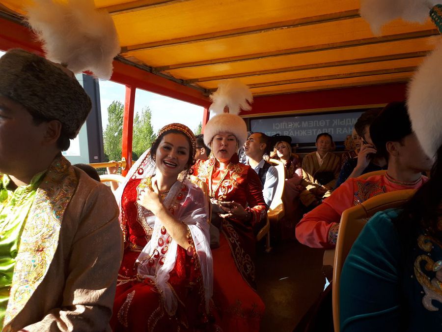 ارنايى مۋزىكالىق قۇرىلعىلارمەن جاساقتالعان قوعامدىق كولىك استانا قالاسىنىڭ كورىكتى جەرلەرى مەن ساياباقتارىنا ايالداپ, ونەرپازدار وڭتۇستىكتەن شىققان جەرگىلىكتى سازگەرلەردىڭ تانىمال اندەرىنەن شاشۋ شاشتى.
