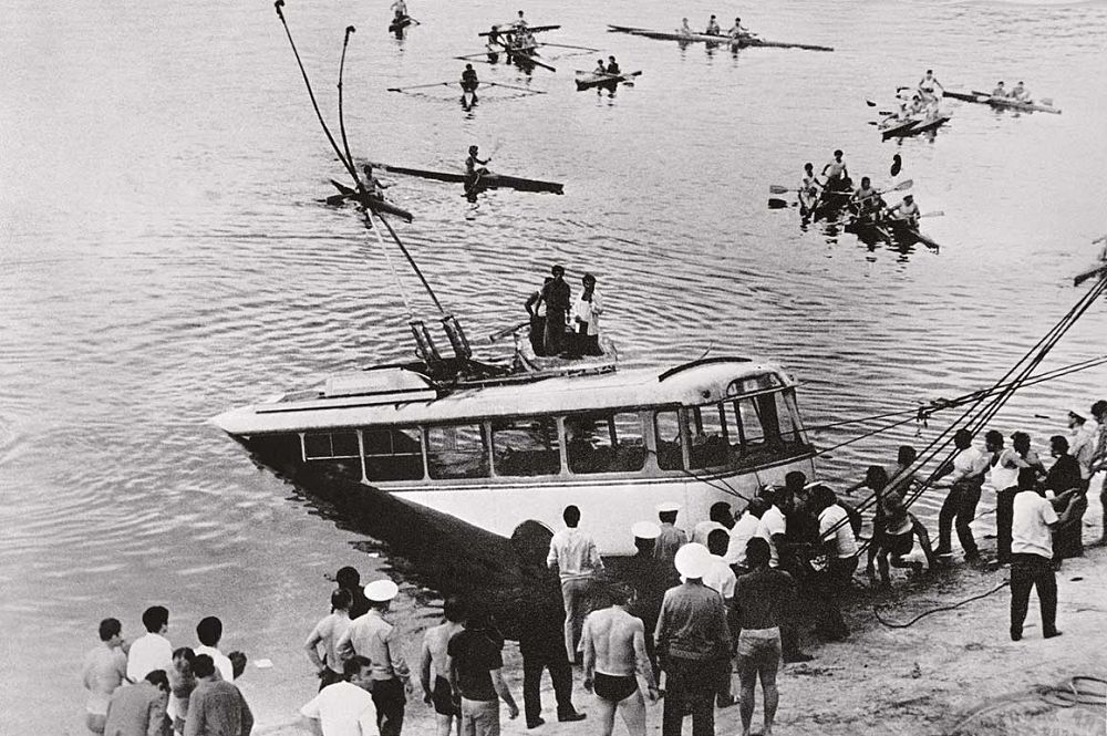 سۋرەتتەردە: شاۆارش ۆلاديميروۆيچ كاراپەتيان. سۋعا باتقان تروللەيبۋس شىعارىلۋدا. 1976 جىل.