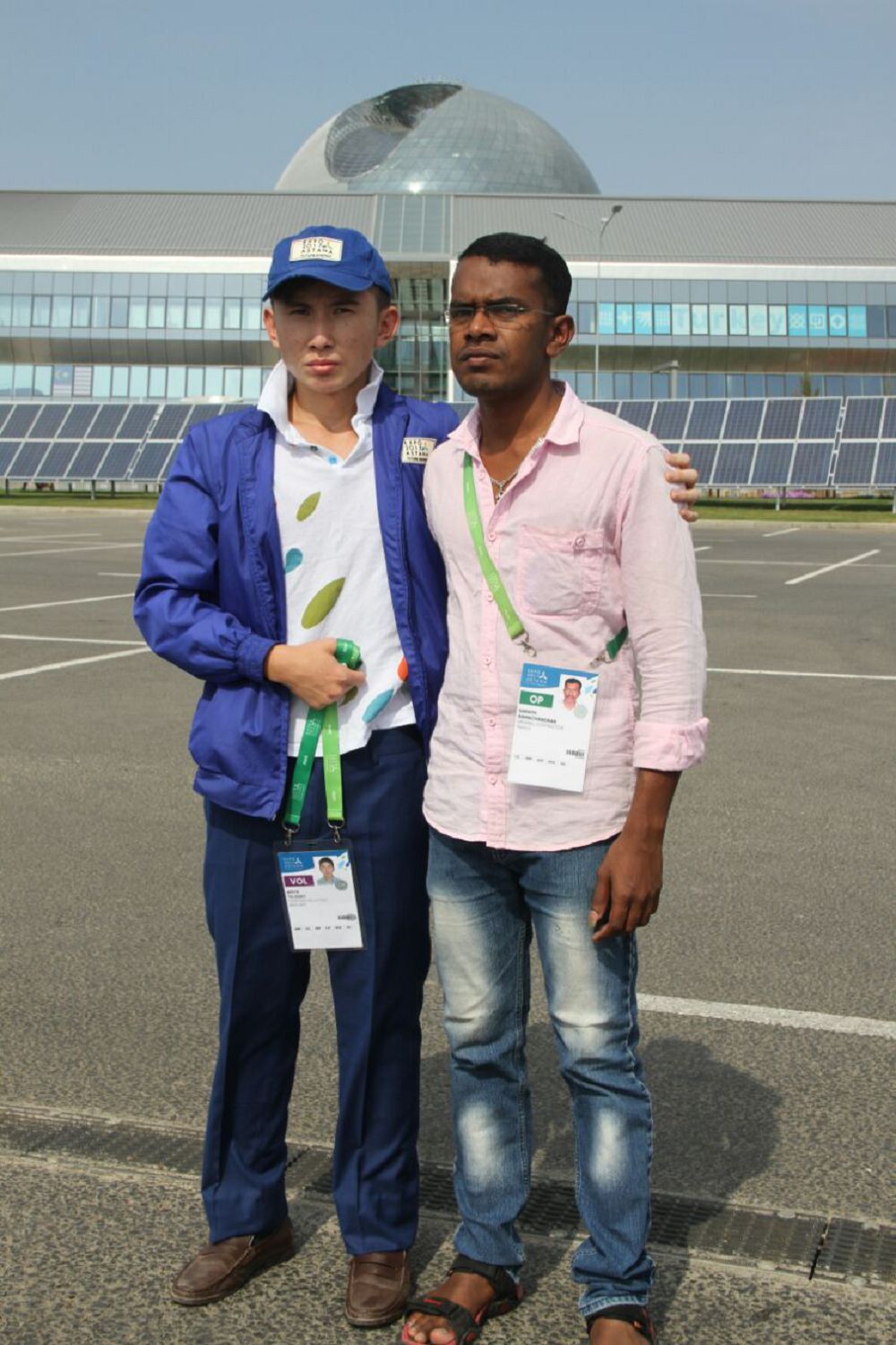 ەكسپو كورمەسىنە ەرىكتىلەردىڭ دە قوسقان ۇلەسى كوپ. الىس-جاقىننان كەلگەن قوناقتارعا جول كورسەتىپ, ءجون سىلتەگەن جاستاردىڭ بارلىعى كەمى ءۇش تىلدە سويلەيدى. تاڭنان كەشكە دەيىن قولدى-اياققا تۇرماي تىكەسىنەن تىك اقىسىز قىزمەت ەتكەن ولاردىڭ ەڭبەگى شىنىمەن دە ەرلىكپەن پارا-پار. كورمەدە جۇمىس ىستەگەن 1500 ەرىكتىنىڭ ىشىندە ءوزىمىزدىڭ قاراكوزدەر دە, شەتەلدىك جاستار دا جەتەرلىك. سولاردىڭ ءبىرى – ايدىن عالىمبەك ۇلى مەن فرانتسيالىق ساراز راحماچادران.