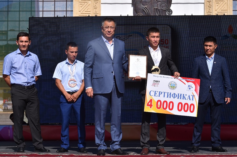 سونىمەن بىرگە, وبلىس اكىمى قايرات ەراليەۆتىڭ جەكە باپكەرى, بوكستان قازاقستان قۇراماسىنىڭ باس جاتتىقتىرۋشىسى مىرزاعالي ايتجانوۆقا 4 ميلليون تەڭگە, ال ءۇشىنشى ورىن يەلەنگەن بوكسشىمىزدىڭ جەكە باپكەرى نۇركەن انداسوۆقا 1 ميلليون تەڭگەنىڭ قارجىلاي سىيلىعىن تابىستادى.