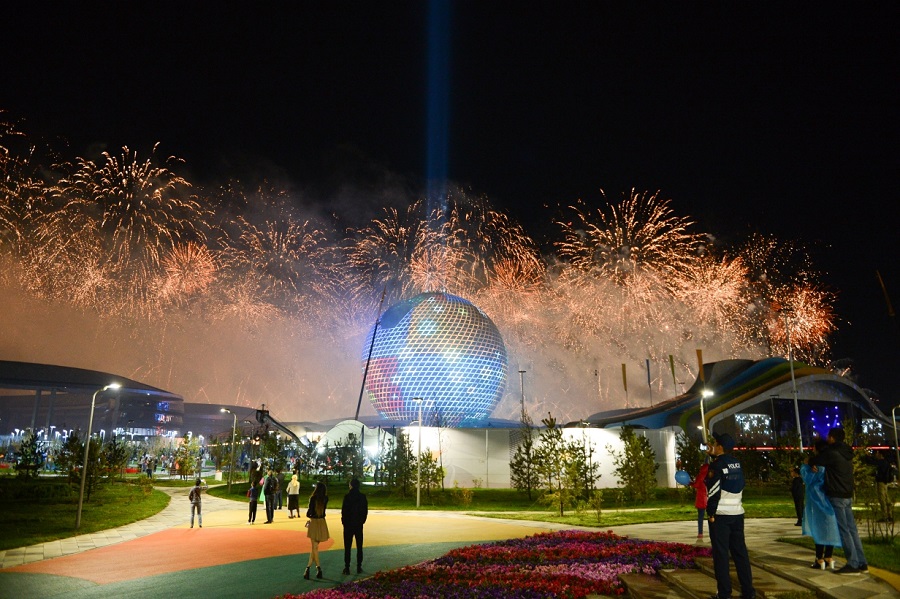 مالىمەتتەر بويىنشا 21:15-تە وتشاشۋ بولادى. ول شامامەن 7 مينۋت 42 سەكۋندقا سوزىلماق. ال «نۇر الەم» عيماراتىنا مەدياجارىقتاندىرۋ جاسالادى. جابىلۋ سالتاناتىندا قولدانىلاتىن وتشاشۋدىڭ ەلەمەنتتەرى بۇرىن ەش جەردە قولدانىلماعان.