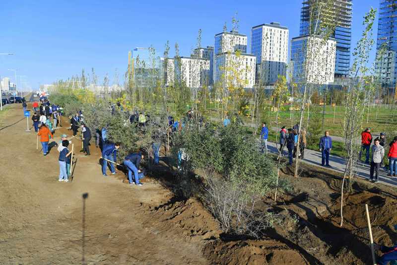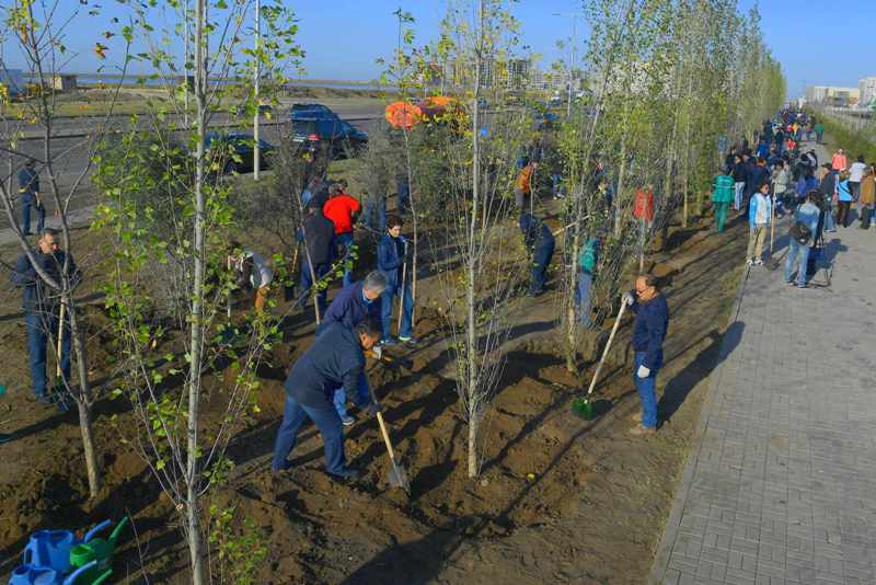 شارا بارىسىندا ەلوردانىڭ سول جاق جاعالاۋىنداعى «جاسىل كۆارتال» تۇرعىن ءۇي كەشەنى ايماعىنا تەرەك, شاعان جانە شىرعاناق كوشەتتەرى وتىرعىزىلدى.