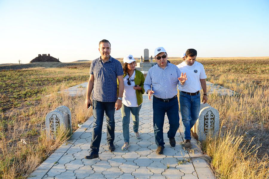 ەكسپەديتسيا الدىمەن جوشى حان مازارىنا سوقتى. جولاۋشىلاردى ولكە تاريحىمەن تانىستىرعان قانىش ساتباەۆ اتىنداعى تاريحي-وندىرىستىك مۇراجايىنىڭ ديرەكتورى كەنجال بالكەنوۆ ايتۋىنشا, مازاردا جوشى حانمەن بىرگە بايبىشەسى بەكتۋمىش انا جەرلەنگەن. جوشى بۇكىل قازاق حاندارىنىڭ اتاسى. ياعني, ۇلى دالا ەلىنىڭ باستاۋى وسىندا جاتىر.