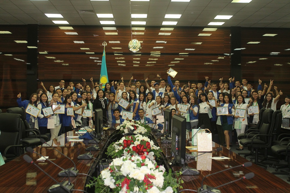 2015 جىلدان باستاپ وبلىسىمىزدىڭ بارلىق اۋدان, قالالارىندا ەكسپو-2017 حالىقارالىق كورمەسىنە ەرىكتىلەردى دايارلاۋ ماقساتىندا ناسيحاتتاۋ جۇمىستارى جۇرگىزىلىپ, كوپتەگەن سەمينار-ترەنينگتەر وتكىزىلدى. جالپى شەتەلدەن كەلەتىن قوناقتار مەن تۋريستەرگە ەلىمىز بويىنشا 3 مىڭنان اسا ەرىكتى قىزمەت كورسەتسە, سونىڭ 150-ءى وقو جاستارى. ونىڭ ىشىندە 73 ۇل, 77 قىز بالاسى.