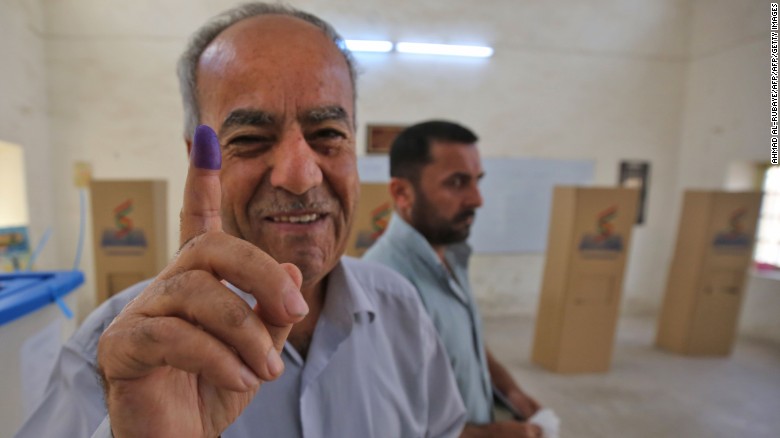 كيركۋكتاعى يراكتىق كۇرد وكىلى سايلاۋدان شىققان سوڭ سيا جاعىلعان ساۋساعىن كورسەتىپ تۇر. CNN cۋرەتى