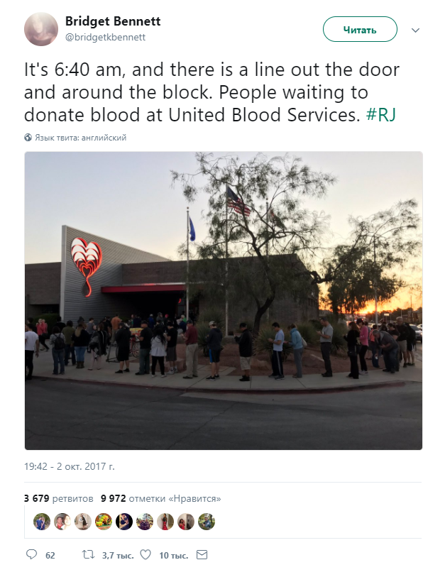 اتىس بىتكەننەن كەيىن كلارك وكرۋگىنىڭ بيلىگى جاراقاتتانعاندارعا كوپ مولشەردە قان كەرەكتىگىن جاريالادى. ۇزاق ۋاقىت وتپەي, الەۋمەتتىك جەلىلەردە دونورلىق ورتالىقتار الدىندا جينالعان ادامداردىڭ سۋرەتتەرى پايدا بولدى. كومەككە كەلگەن ادامداردىڭ كوپ بولعانى سونشا, ەرىكتىلەر دونورلارعا تاماق پەن سۋ اكەلە باستادى. مەملەكەتتىك مەكەمەلەردەگى تۋلار ءتۇسىرىلدى.