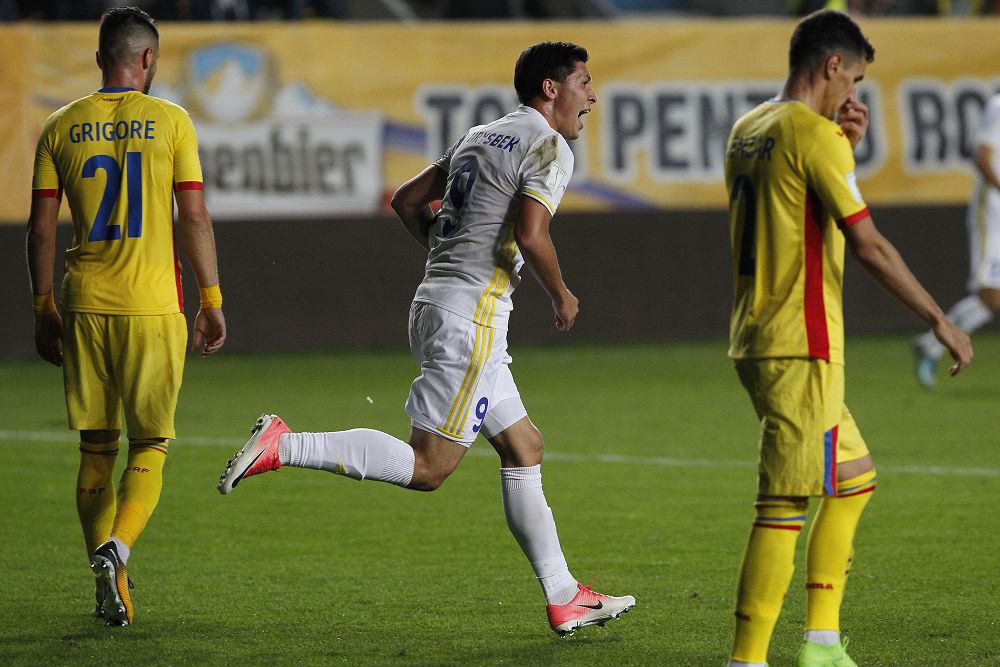 رۋمىنيانىڭ پلوەشتي قالاسىنداعى يليە وانە اتىنداعى ستاديونىندا وتكەن كەزدەسۋدە جەرلەستەرىمىز قارسىلاستارىنا 1:3 ەسەبىمەن ەسە جىبەردى. ماتچتىڭ العاشقى 15 مينۋتى تەڭ دارەجەدە ءوتتى. وسى ۋاقىت ارالىعىندا قازاقستاندىق فۋتبولشىلار ءبىر-ەكى رەت رۋمىنيا قۇراماسىنىڭ قاقپاشىسى چيپريان تەتەرۋشانۋدىڭ سەرگەكتىگىن تەكسەرىپ كورگەن بولاتىن. ارادان ەكى مينۋت وتكەندە رۋمىن فۋتبولشىلارى ءبىزدىڭ قاقپامىزدىڭ كىلتىن ىزدەپ كوردى. ويىننىڭ 33-مينۋتىندا كونستانتين بۋدەسكۋ ابزال بەيسەبەكوۆتى قاپى قالدىرىپ, قاقپامىزعا گول سوعىپ كەتتى. ال 38-مينۋتتا بۋدەسكۋ رۋمىنيا قۇراماسىنىڭ ەكىنشى گولىن سالدى. ءسويتىپ, ءبىرىنشى تايم سوڭىنا دەيىن ەسەپ وزگەرگەن جوق.
