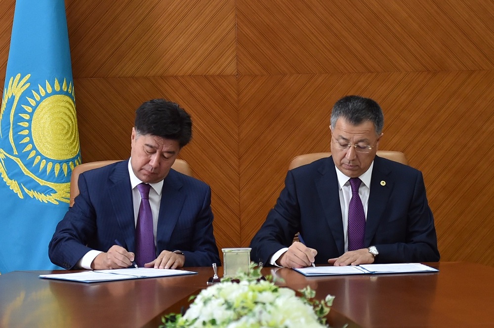كەدەسۋ بارىسىندا قوس تاراپ وقو اكىمدىگى مەن استانا قالاسىنداعى مەملەكەتتىك قىزمەت سالاسىنداعى ايماقتىق حاب اراسىنداعى ىنتىماقتاستىق تۋرالى مەموراندۋمعا قول قويدى.