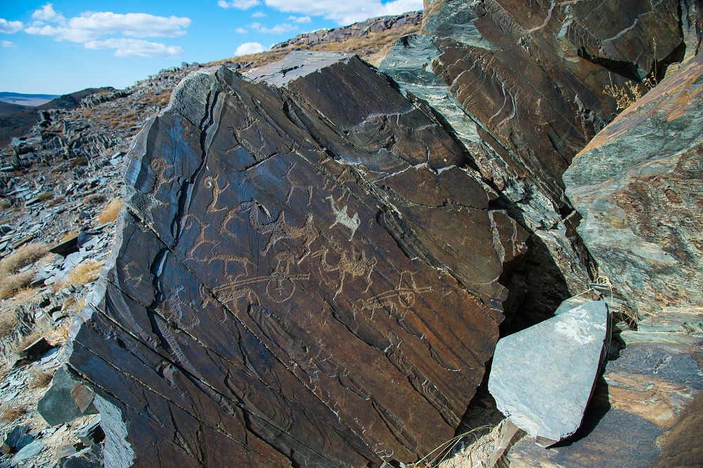 مىناۋ شۇقىروي. ودان كەيىن قوسۇيەڭكى. قوسۇيەڭكىنىڭ سول قاپتالىندا تاقياتوبە جاتىر. داربازادان ءوتىپ, تاۋعا كىردىك. باعىتىمىز – ساۋىسقاندىق. ءسوز باسىندا ايتتىق, ساۋىسقاندىقتىڭ قويناۋى قازىنا. مادەني قازىنا. ويلاڭىزشى, ءبىزدىڭ زامانىمىزعا دەيىنگى ەكىنشى مىڭجىلدىقتا, تاس جانە قولا ءداۋىرىنىڭ باسىندا ءومىر سۇرگەن ادامداردىڭ قولتاڭباسى قالعان عوي. بالا ساۋىسقاندىق وزەنىن بويلاپ كەلەمىز. كونەنىڭ كوزىندەي بولعان تاستاعى تاڭبالاردىڭ ءىزى بايقالادى. تاۋعا ورمەلەپ شىقتىق. قۇداي-اۋ, تاس ءداۋىرىنىڭ تاماشاسى كوز الدىمىزدا جارق ەتە قالدى. مىنە, وگىزگە اربا بايلاپ, ونى ادام ايداپ كەتىپ بارادى. التىباقان سەكىلدى دۇنيەدە ەكى ادام تەربەلىپ تۇرعانداي. ارقار ويناپ, تۇيە ماڭ-ماڭ باسىپ, تاۋەشكى تاستان-تاسقا سەكىرىپ بارا جاتقانداي. ءبىر تۇسىندا اتقا قونعان, قولىنا قىلىشىن العان ساربازدى كورەسىز. تاپ ءبىر كينو لەنتا دەرسىز. كەرەمەت كورىنىس. ەندىگى ءسوزىمىزدى عالىمداردىڭ دالەل-دەرەگىمەن جالعايىق.