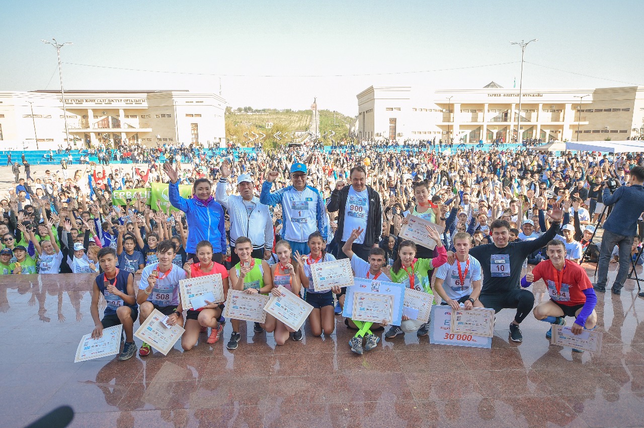 «بۇگىنگى ءداستۇرلى جالپى قالالىق جۇگىرۋ مارافونىنا قاتىسىپ, بۇقارالىق سپورتتىڭ دامۋىنا ۇلەس قوسىپ جۇرگەن قالا تۇرعىندارى مەن جاستارعا العىس ايتامىن. ومىرىمىزگە قاۋىپ توندىرەتىن زياندى زاتتاردان اۋلاق بولىپ, سالاۋاتتى ءومىر سالتىن ۇستانۋىمىز قاجەت. بۇگىنگى 5 مىڭ ادام قاتىسقان مارافون وسىنىڭ ايعاعى. وسى قالىپتان تايماي بۇقارالىق سپورتتى دامىتۋعا ۇلەس قوسىپ, ونى كەڭ دارەجەدە ناسيحاتتايتىن بولساق 2020 جىلعا دەيىن بۇقارالىق سپورتپەن شۇعىلدانۋشىلاردىڭ سانىن 30 پايىزعا جەتكىزەمىز, ال وسى جىلى 26 پايىزعا جەتەدى دەپ جوسپارلانۋدا»,-دەدى اكىم.