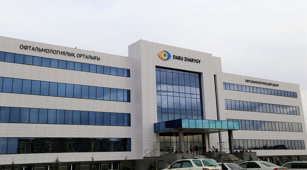 سۋرەتتەردە: ءمجا اياسىندا تۇرعىزىلعان وفتالمالوگيالىق ورتالىق پەن جەدەل-جاردەم بەكەتىنىڭ سىرتقى كورىنىسى