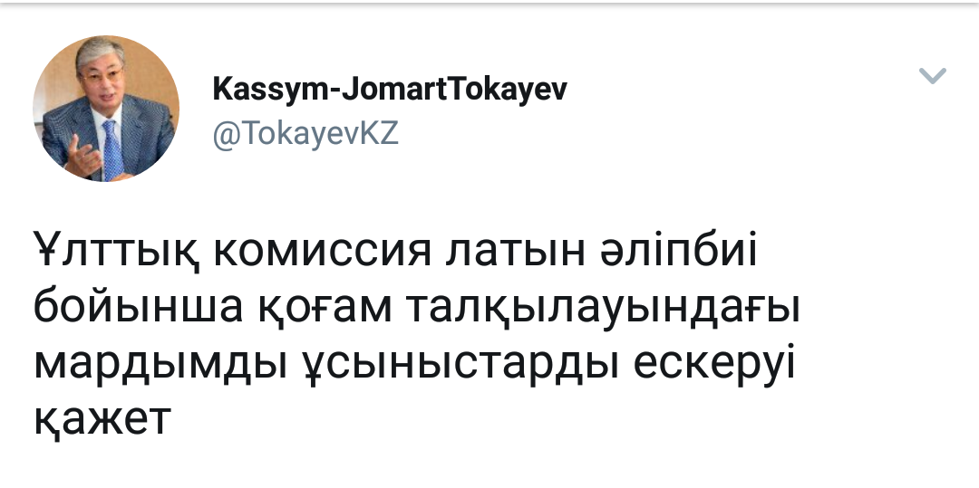 «ۇلتتىق كوميسسيا لاتىن ءالىپبيى بويىنشا قوعام تالقىلاۋىنداعى ماردىمدى ۇسىنىستاردى ەسكەرۋى قاجەت», - دەپ جازادى توقاەۆ تwitter-دەگى پاراقشاسىندا.