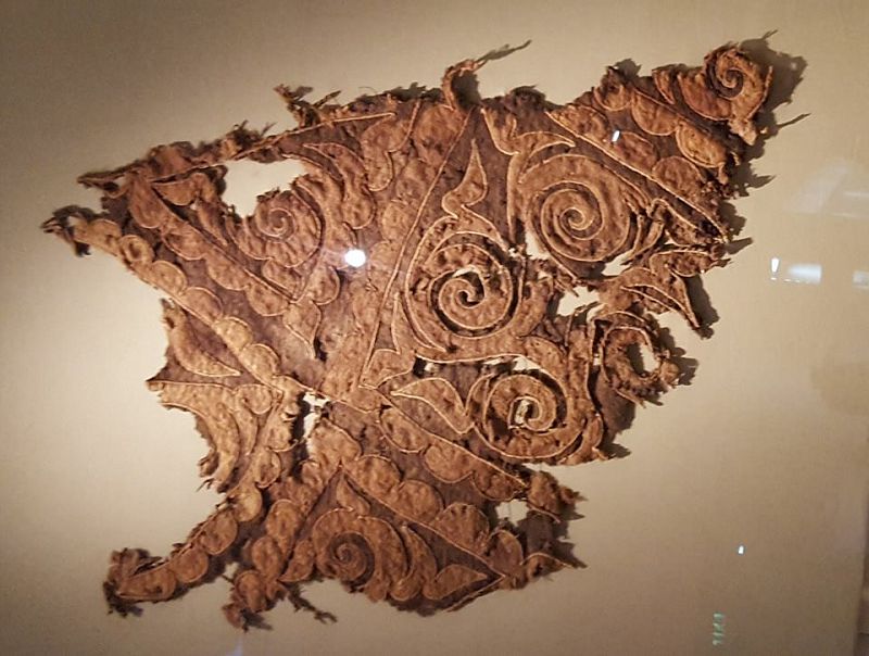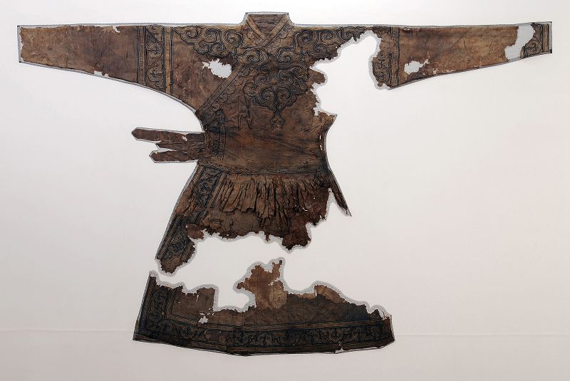 ەكىنشى عاجايىپ دۇنيە – 2003 جىلى قانگاي-كەنتاي ولكەسىنە جۇرگىزىلگەن قازبا جۇمىستارى كەزىندە ويۋلى شاپان (2-سۋرەت) تابىلدى. موڭعول عالىمدارى بۇل جادىگەردى ءحىى-حIV عاسىرلارعا ءتان, ياعني شىڭعىس ىرگەسىن قالاعان موڭعول حاندىعىنىڭ مۇراسى دەگەن پىكىرگە توقتاپتى. «جوق, ولاي ەمەس, بۇل عۇندار زامانىنىڭ جادىگەرى» دەۋشىلەر دە بار ەكەن. بىراق شاپانداعى ويۋ-ورنەكتىڭ ءستيلى بۇگىنگى قازاق ويۋلارىنان اۋمايدى. قاجەت دەسەڭىز, ۇلت مۇراسىنىڭ جاناشىرى, ويۋتانۋشى ارقالىق قالاسىنىڭ تۇرعىنى ءشوپتىباي ءبايدىلديننىڭ 2011 جىلى جارىق كورگەن «ويۋ وي, ورنەك سال» دەيتىن كىتابىنداعى 5000 ءتۇرلى ويۋمەن شەندەستىرىپ كورە سالىڭىز.