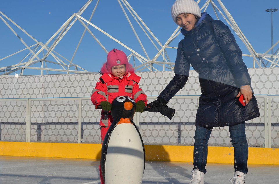 «MegaIce» كومپانياسىنىڭ ەنشىسىندە ءارتۇرلى ولشەمدەگى 1000 جۇپ جاڭا كونكي بار. ولار بارلىق كەلۋشىلەرگە جالعا بەرىلەدى. مۇز ايدىنىندا كونكيمەن سىرعاناۋدى جاڭا باستاعان كەلۋشىلەرگە جاتتىعۋ قۇرىلعىلارى ۇسىنىلادى. مۇز ۇستىندە ءتارتىپ پەن قاۋىپسىزدىككە جاۋاپتى ماماندار, نۇسقاۋشىلار بولادى. كەلۋشىلەر ءۇشىن جەكە زاتتاردى ساقتاۋ ورىندارى, كيىنۋ بولمەلەرى, سونداي-اق ىستىق تاماق بەرۋ ورىندارى قاراستىرىلعان.