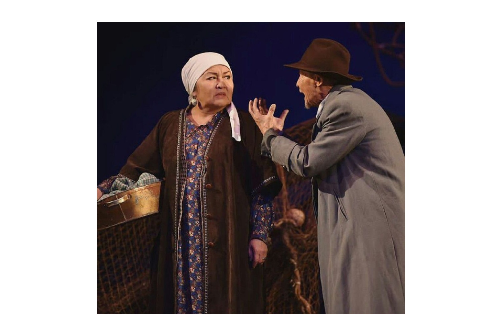 رومانداعى الۋان قىرلى كەيىپكەرلەر ساحنادا مەيلىنشە شاعىندالا كەلىپ, ساناۋلى وبرازبەن ءازىم – باكيزات – جادىگەر ۇشەۋىنىڭ توڭىرەگىنە توپتاسقان. قويىلىمدا ارال-شال – ەدىل رامازانوۆ, سارى شال – كادىربەك دەمەسىنوۆ, جادىگەردىڭ اناسى – ليديا كادەنوۆا, بالاسى – دينارا نۇربولات, سارى يۆان – جومارت زەينابىل, اقجىگىت – تۇرسىن قۇراليەۆ سياقتى درامانى ورىستەتەتىن ۇلكەن-كىشى كەيىپكەرلەر بار. بىراق بۇكىل وقيعا وسى ءۇش ادامنىڭ توڭىرەگىندە ءوربيدى. ويتكەنى بۇل ۇشەۋ – جەر بەتىندەگى بۇكىل ادامنىڭ ساحناعا ۇشىپ تۇسكەن سەبەزگى ساۋلەسى.