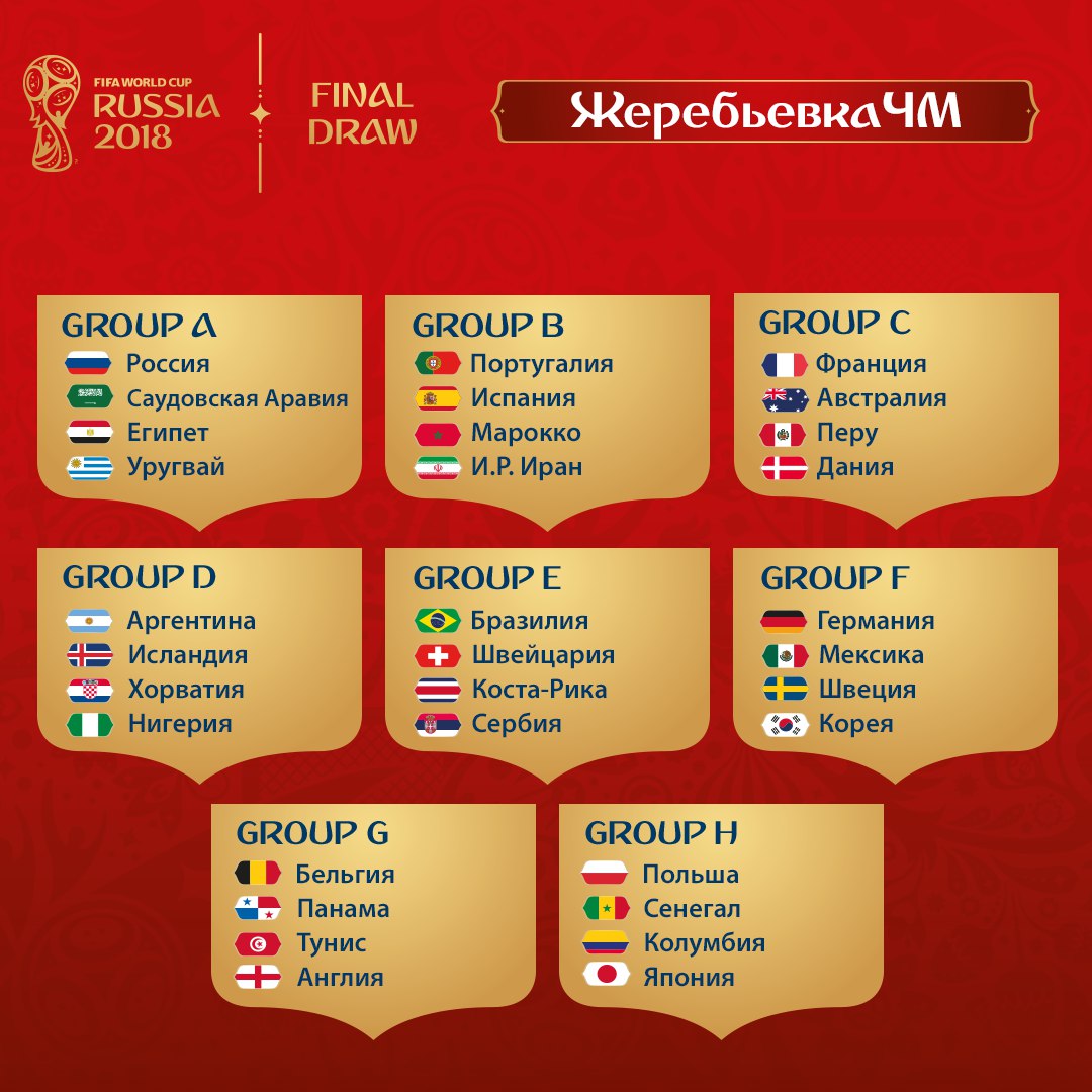 بىرىنشىلىك كەلەسى جىلدىڭ 14 ماۋسىمىندا ماسكەۋدەگى «لۋجنيكي» ستاديونىندا رەسەي مەن ساۋد ارابياسى اراسىنداعى كەزدەسۋمەن باستالادى. توپتىق كەزەڭ 28 ماۋسىمدا اياقتالسا, فينال 15 شىلدەدە «لۋجنيكيدە» وتەدى.