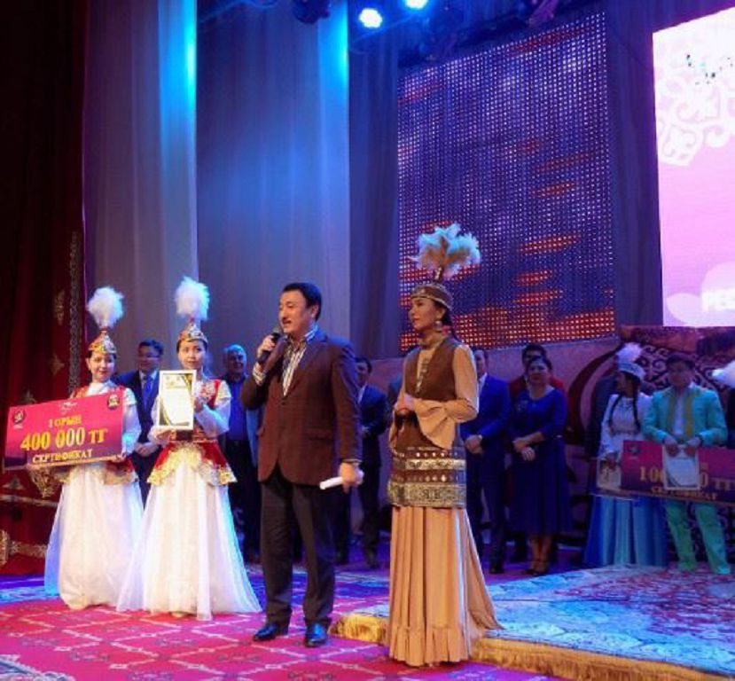 قالاداعى ۇلتتىق ونەر ورتالىعىنىڭ جەتەكشىسى گۇلسىم ءداۋىت ساحنادا جاسىنداي جارقىلداعان سۇلۋجان تاۋبالدىعا كورەرمەن ىقىلاسىنىڭ ايعاعى رەتىندە قولدان قۇيىلعان كۇمىس جۇزىك تارتۋ ەتتى.