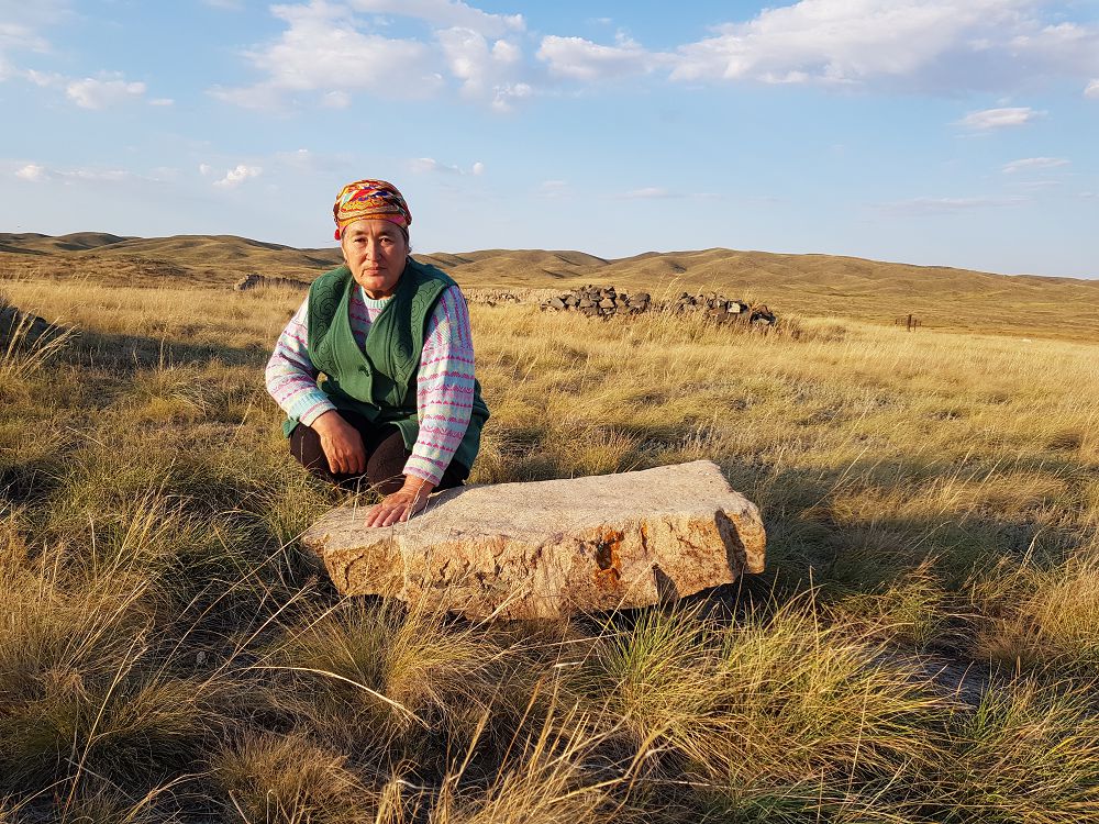 سۋرەتتەردە: ماديان ءتۇسىپ ۇلى. سۋرەت اقبۇلاق اۋىلىنداعى مۋزەيدەن الىندى; ماديان ءتۇسىپ ۇلى كوتەرگەن تاس جانىندا وتىرعان كەلىنى بيبىگۇل كەنجەبايقىزى.
