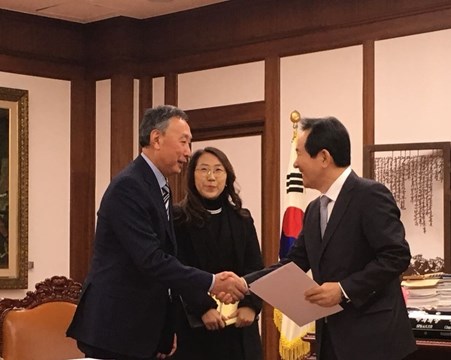 گ.كيم پرەزيدەنت ن.نازارباەۆتىڭ 2016 جىلعى 9-11 قاراشاداعى سەۋلگە مەملەكەتتىك ساپارى بارىسىندا قول قويىلعان ستراتەگيالىق ارىپتەستىك قاتىناستاردى ودان ءارى تەرەڭدەتۋ تۋرالى بىرلەسكەن دەكلاراتسيانىڭ زور ماڭىزىن اتاپ ءوتتى. جۇزدەسۋشىلەر ەكىجاقتى اۋقىمدى بايلانىستاردى نىعايتۋ ءۇشىن پارلامەنتارالىق ءوزارا ءىس-قيمىلدىڭ ەرەكشە ماڭىزى تۋرالى ورتاق پىكىر ءبىلدىردى. دەپۋتاتتىق دوستىق توپتارى جۇيەسى بويىنشا پارلامەنتارالىق بايلانىستاردى دامىتۋ تۋرالى كەلىسىمگە قول جەتكىزىلدى, قازاقستان پارلامەنتى سەناتىنىڭ توراعاسى قاسىم-جومارت توقاەۆتىڭ وڭتۇستىك كورەيا ۇلتتىق اسسامبلەياسىنىڭ باسشىسىنا بيىل رەسمي ساپارمەن استاناعا كەلۋگە شاقىرۋى تابىس ەتىلدى. گ.كيم ەلىمىزدىڭ ينۆەستيتسيالىق زاڭناماسىمەن جانە ەكونوميكالىق جوسپارلارىمەن تانىستىرىپ, قازاقستانداعى جوبالاردى ىسكە اسىرۋ جونىندەگى بىرلەسكەن جۇمىستارعا كورەي بيزنەسىن شاقىردى. كورەي تۇبەگىندەگى جاعدايدى رەتتەۋ تاقىرىبىن تالقىلاۋ بارىسىندا گ.كيم بۇۇ قاۋىپسىزدىك كەڭەسىنىڭ توراعاسى رەتىندە قازاقستاننىڭ 2018 جىلى قاڭتاردا قابىلداعان ماڭىزدى شارالارىنا توقتالدى. ول بۇۇ قاۋىپسىزدىك كەڭەسىنىڭ 18 قاڭتارداعى پرەزيدەنت ن.نازارباەۆ پەن پولشا پرەزيدەنتى ا.دۋدا قاتىسقان «جاپپاي قىرىپ-جويۋ قارۋلارىن تاراتپاۋ: سەنىم شارالارى» تاقىرىپتىق بريفينگىن اتاپ ءوتىپ, ونىڭ قورىتىندىسى بويىنشا قاۋىپسىزدىك كەڭەسى توراعاسىنىڭ ايماقتىق قاقتىعىستاردى بولدىرماۋ جانە الدىن الۋ ديپلوماتياسى تۋرالى مالىمدەمەسى قابىلدانعانىن ايتتى. قازاقستان رەسپۋبليكاسى ۇنقاتىسۋ قالىپتاساتىنىنا جانە كورەي تۇبەگىندەگى شيەلەنىستىڭ شەشىمى تابىلاتىنىنا سەنىم ارتادى, دەدى گ.كيم.