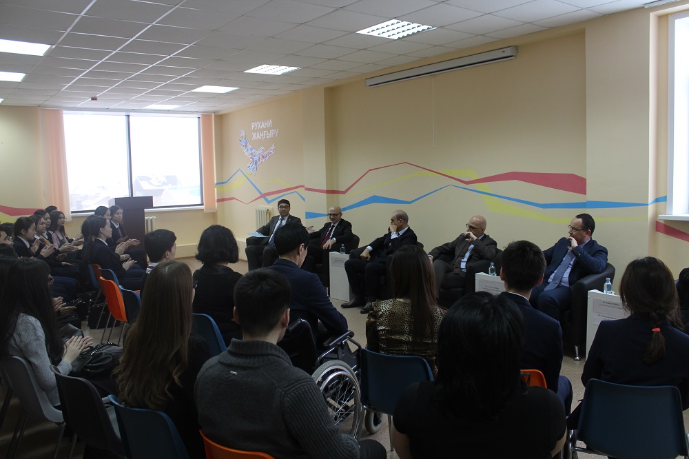 يتالياندىق عالىمدارمەن بولعان كەزدەسۋگە ورال قالاسى جوو-لارىندا ءبىلىم الىپ جۇرگەن بولاشاق ينجەنەرلەر, نازارباەۆ زياتكەرلىك مەكتەبىنىڭ وقۋشىلارى قاتىستى.