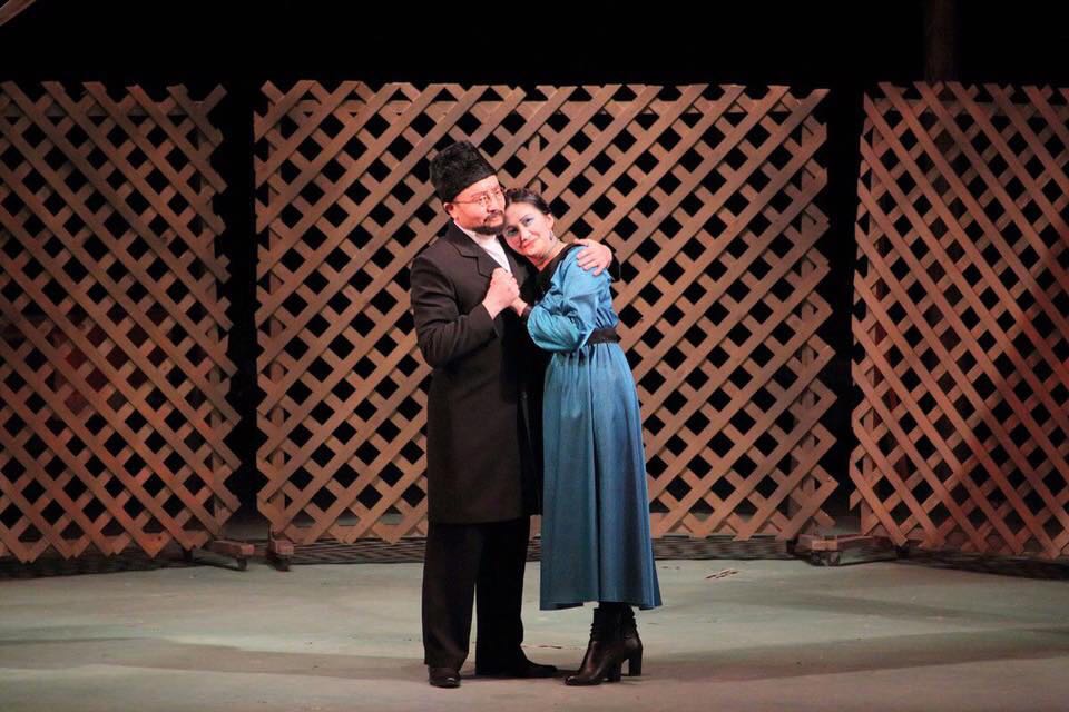 سپەكتاكل ايگىلى تۇلعانىڭ جارى ءبادريسافا ەكەۋىنىڭ شاڭىراق كوتەرىپ, كيىز ءۇيدىڭ ۋىقتارىن قاداپ جاتقان شۋاقتى ساتىنەن باستالادى. وسى ۋاقىتتا «ۇشتىكتىڭ» جالاڭداعان جەندەتتەرى كەلىپ, ايەلى مەن قىزىن جىلاتىپ-سىقتاتىپ احاڭدى تۇتقىنداپ اكەتەدى. قويىلىم رەجيسسەرى وسى ءبىر كۇيزەلىسكە تولى ءساتتى ۇسىنۋ ارقىلى بايتۇرسىنوۆتىڭ عانا ەمەس, الاشوردا ۇكىمەتىنىڭ دە شاڭىراعى شايقالىپ, ۇلت سەركەلەرىنىڭ ساعى سىنا باستاعان كەزىن كورسەتكىسى كەلگەن سەكىلدى.