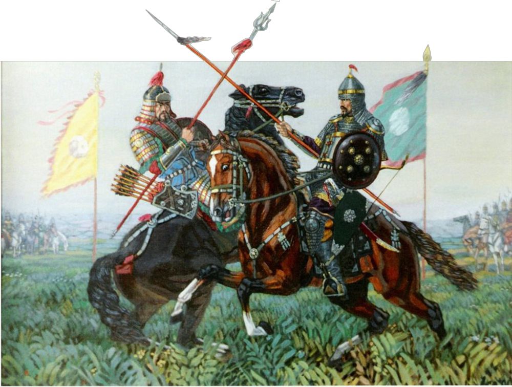 – ۋاي, اعايىن! – دەپ كۇندەي كۇركىرەيدى باتىر, – مىنا سەمسەرمەن, مىنا قانمەن انت بەرەمىن – قاسىق قانىمىز قالعانشا قاسيەتتى جەرىمىزدى جاۋعا تاپتاتپايمىز!