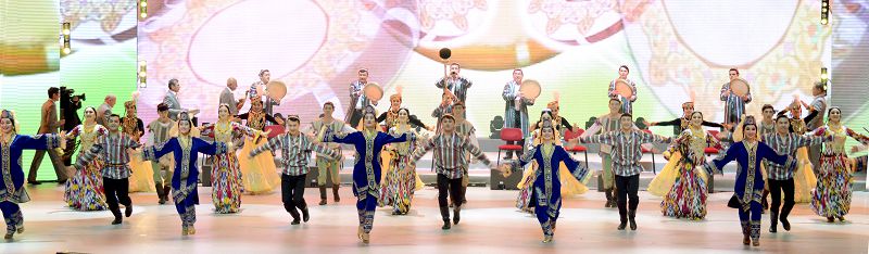 تاريحي ءراسىم تاماشاسىنان كەيىن سالتاناتتى كەش مەرەكەلىك كونتسەرتكە ۇلاستى. وندا وزبەكستان مەن قازاقستاننىڭ حالىق ارتىستەرى فاررۋح زاكيروۆ جانە وزبەكستاننىڭ ەڭبەك سىڭىرگەن ءانسامبلى «ياللا» باستاعان حالىق ارتىستەرى نورمۋمين سۋلتونوۆ, ساماندار اليموۆ, سەۆارا نازورحون سىندى ساحنا ساڭلاقتارى ونەر كورسەتتى.