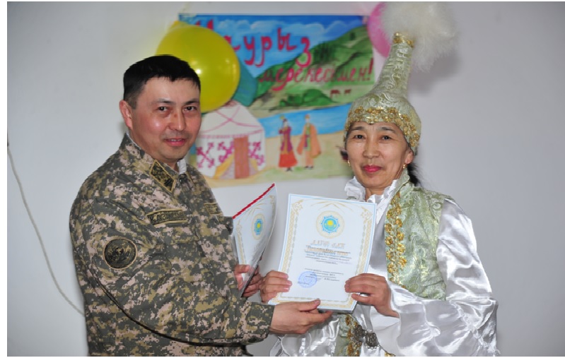 ۇيىمداستىرۋشىلاردىڭ بارلىعىنا گوسپيتالدىڭ مەديتسينا قىزمەتىنىڭ باسشىسى مايور باۋىرجان بالۋباەۆ راحمەتىن ايتىپ, ۇلىستىڭ ۇلى كۇنىمەن قۇتتىقتادى. مەرەكە سوڭىندا قىدىر اتا كەلىپ, اسكەريلەرگە اق تىلەگىن ايتىپ, باتاسىن بەردى.