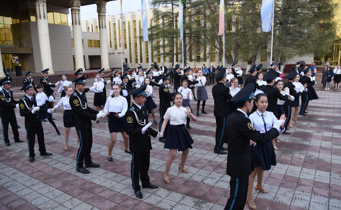 سوعىس جىلدارىنداعى «كاتيۋشا», «سيني پلاتوچەك» سياقتى اندەر شىرقالدى. مۋزىكالىق كولەدج وركەسترى «جەڭىس كۇنى» ءۆالسىن ورىندادى. سارايدىڭ «ۆدوحنوۆەنيە», «اناستاسيا», «بلەيز» سياقتى بي ستۋديالارىنىڭ ءبيشى قىزدارى مەن قالاداعى كادەت اسكەري مەكتەپ-ينتەرناتىنىڭ تاربيەلەنۋشىلەرى ۆالس بيلەدى.