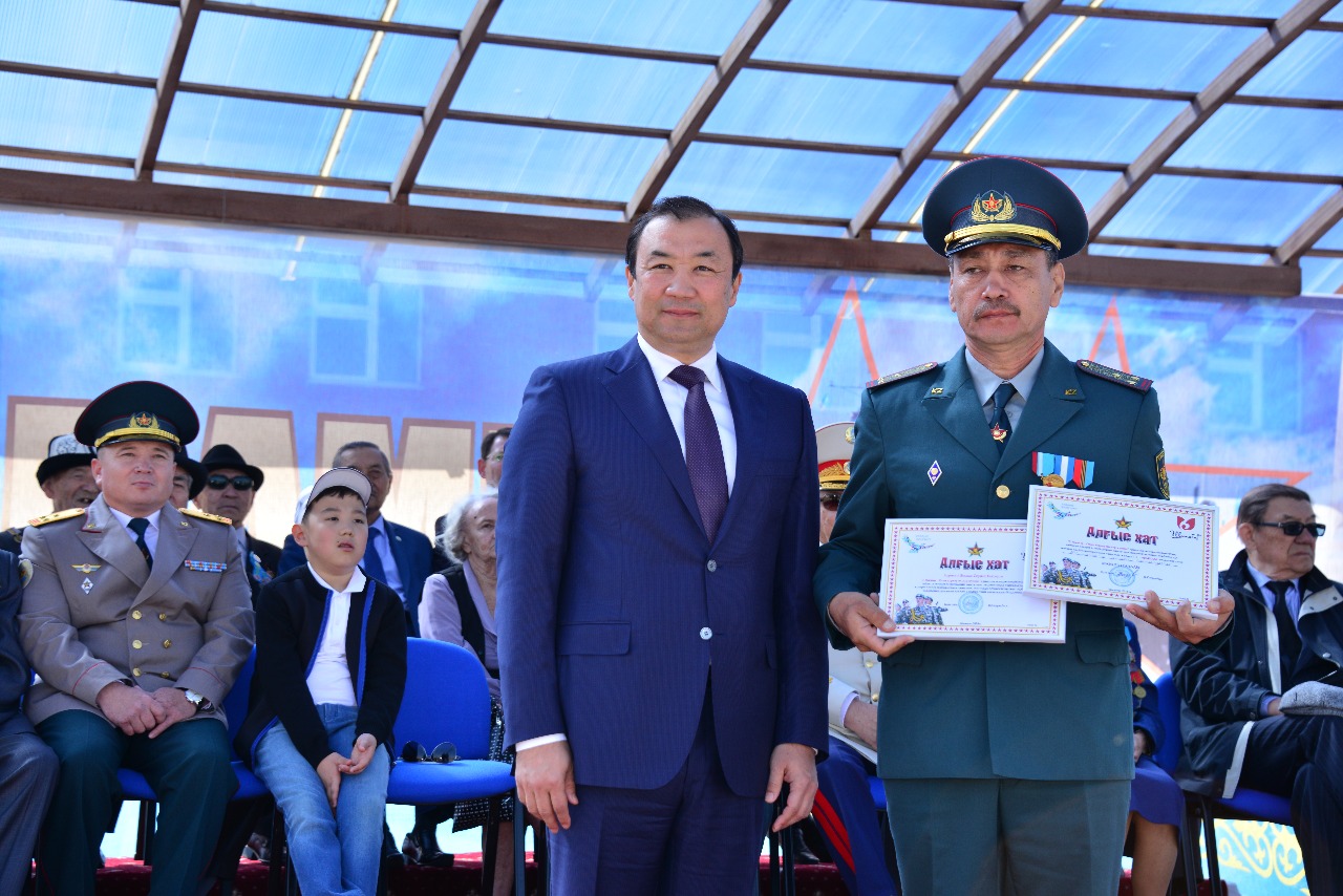 مەرەكەلىك ءىس-شارا سوڭىندا جينالعاندار «وتار» اسكەري بازاسىندا وتكەن سالتاناتتى شەرۋدى تىكەلەي ەفيردەن تاماشالادى.