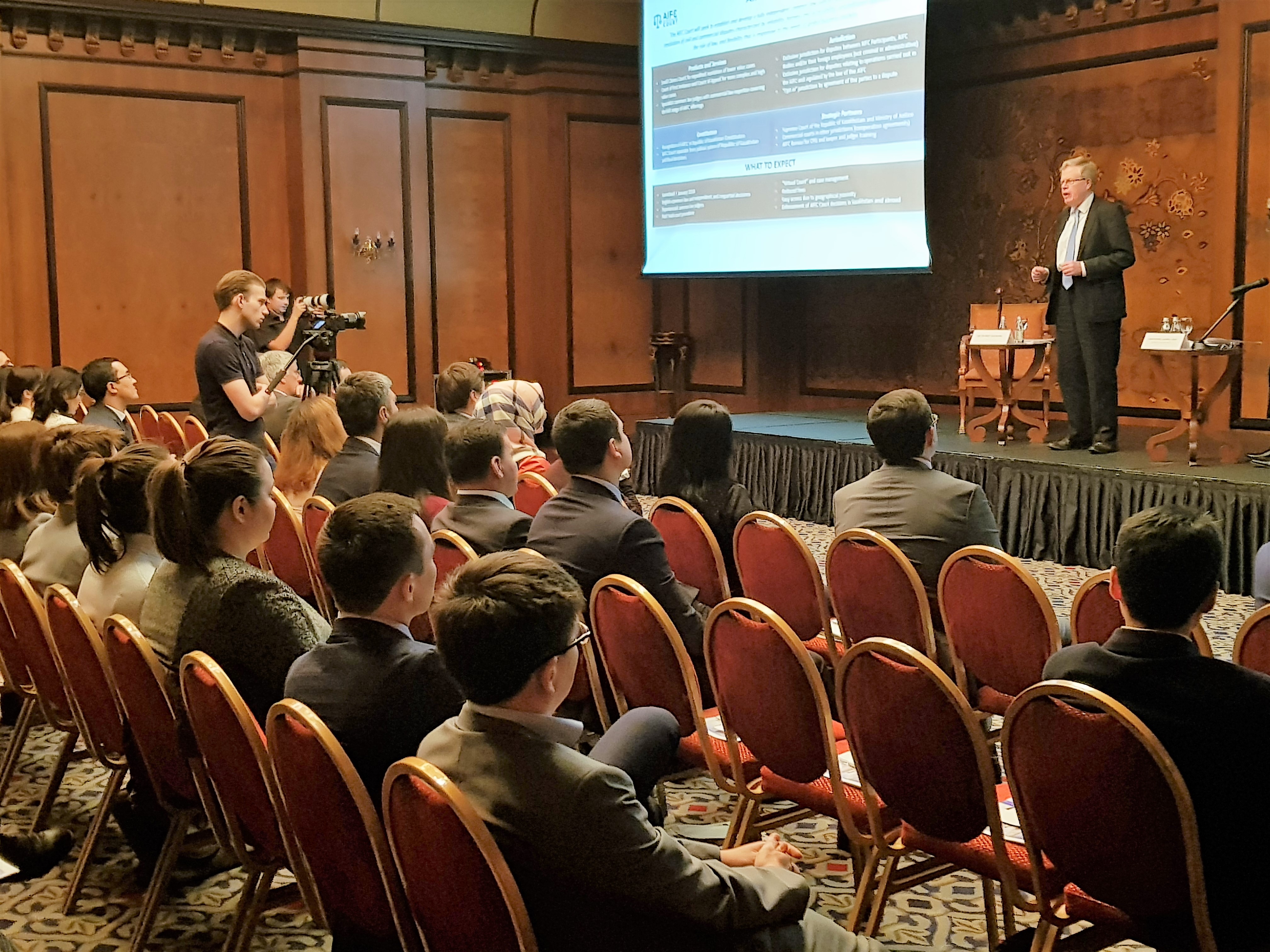 سوت دجەكسون, انگليا مەن ۋەلستىڭ اپەللياتسيالىق سوتىنىڭ بۇرىنعى سوتى, زاڭگەرلەر مەن داۋ تاراپتارى احقو سوتىن قالاي پايدالانا الاتىندىعى, ولاردىڭ ونىڭ قىزمەتىنە قالاي قاتىسا الاتىندىعىن, سونداي-اق بارلىق قول جەتكىزىمدى ونىڭ قىزمەتتەرىن قالاي پايدالانۋعا بولاتىنىن ءتۇسىندىرىپ كەتتى. ول سونداي-اق احقو قاتىسۋشىسى بولىپ تابىلمايتىن جانە قارجى ورتالىعىنا ەشبىر قاتىسى جوق كەز كەلگەن تاراپتارعا داۋدىڭ بارلىق تاراپتارىنىڭ كەلىسىمى بولعان جاعدايدا احقو سوتىنا شاعىم بەرۋگە مۇمكىندىك بەرەتىن ارنايى يۋريسديكتسياعا يە بولاتىندىعى تۋرالى ايتىپ كەتتى. كريستوفەر كەمپبەلل-حولت مىرزا, احقو سوتىنىڭ جانە حالىقارالىق تورەلىك ورتالىعىنىڭ (حتو) تىركەۋشىسى مەن اپپارات باسشىسى قىزمەتىن اتقارۋشى, قۇقىقتىق كونفەرەنتسيادا مودەراتور رەتىندە قاتىستى, سونداي-اق حالىقارالىق تورەلىك ورتالىق جۇمىسىنا قاتىستى بارلىق سۇراقتارعا جاۋاپ بەردى. ول مىناداي مالىمدەمە جاسادى: