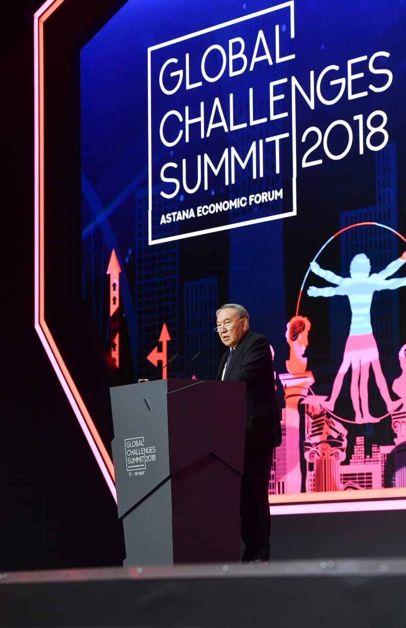 نۇرسۇلتان نازارباەۆ شيەلەنىستى جاعدايلاردىڭ كوبەيگەنىنە جانە قازىرگى وركەنيەتتىڭ جاڭا جاھاندىق ترانسفورماتسياسىنا توقتالىپ, عالامدىق دامۋدىڭ باستى بەس مەگاترەندىن اتاپ ءوتتى. ولاردىڭ قاتارىندا ادام قىزمەتىنىڭ بارلىق سالالارىن تسيفرلاندىرۋ, ەنەرگەتيكالىق رەۆوليۋتسيا, جەر شارىنداعى تۇرعىندار سانىنىڭ جىلدام ءوسۋى, ۋربانيزاتسيا قارقىنى مەن سيپاتىنىڭ جانە جاھاندىق ەڭبەك نارىعىنىڭ وزگەرۋى بار.
